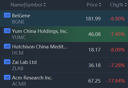 BeiGene, Yum China, Zai Lab, ACM and HUTCHMED Tumbled in Morning Trading