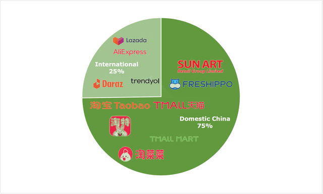 In FY22, Alibaba had 903 million active annual retail customers (AACs) across its various businesses. Alibaba had 98% retention of customers who spent at least $1,500 USD in FY21. These high-spending customers represent about 15% of AACs. With the addition of a more robust logistics network with Cainiao discussed below, 70% of new active annual customers were from less developed areas of China. More than 50% of Taocaicai, a direct-from-producer grocery and consumer staples provider were first-time buyers. Taobao, a hybrid of Etsy and eBay, had a 100% year-over-year increase in orders.