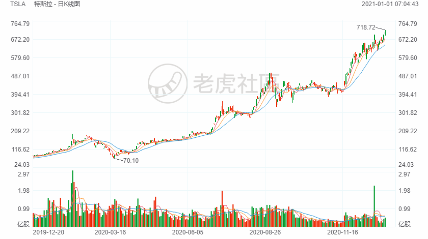 分板块来看,科技股以42%的涨幅,成为标普500指数表现最佳板块,其中新晋成分股特斯拉全年飙涨7.43倍,成为涨幅最大的标普500指数成分股。五大科技巨头脸书、苹果、亚马逊、微软和谷歌(FAAMG)当中,苹果以80.75%的涨幅居首,亚马逊次之,涨幅76.26%。