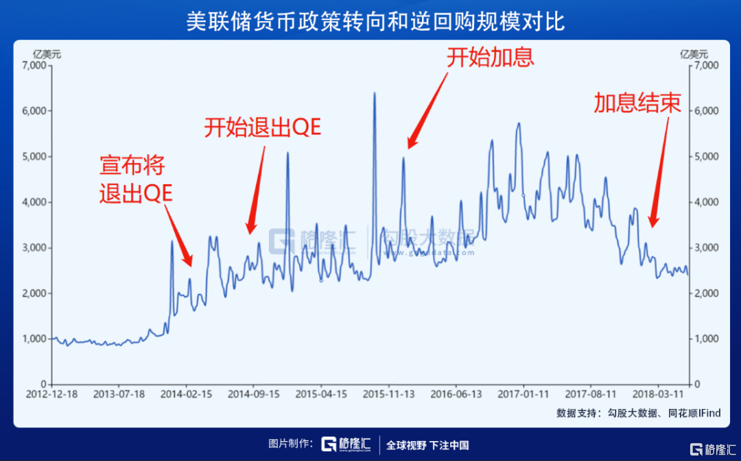 加息预期抬升、讨论、释放信号、宣布实施,是美联储政策转变的一贯流程,逆回购的数字并不足以预测QE退出或者加息时点会在什么时候到来,但毫无疑问代表着最鸽派的时期已经过去。