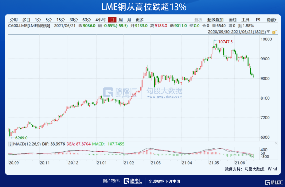 市场中投资者的风险偏好按照等级,大致可以分为“比特币—大宗商品—股市—逆回购”。显然,当前投资者的风偏正在逐渐下降,先是加密货币崩盘,BTC从6万美元跌至3万多美元;大宗商品的泡沫也在不断挤出,LME铜从10700美元高位跌超13%,美股在高位震荡,逆回购交易激增。