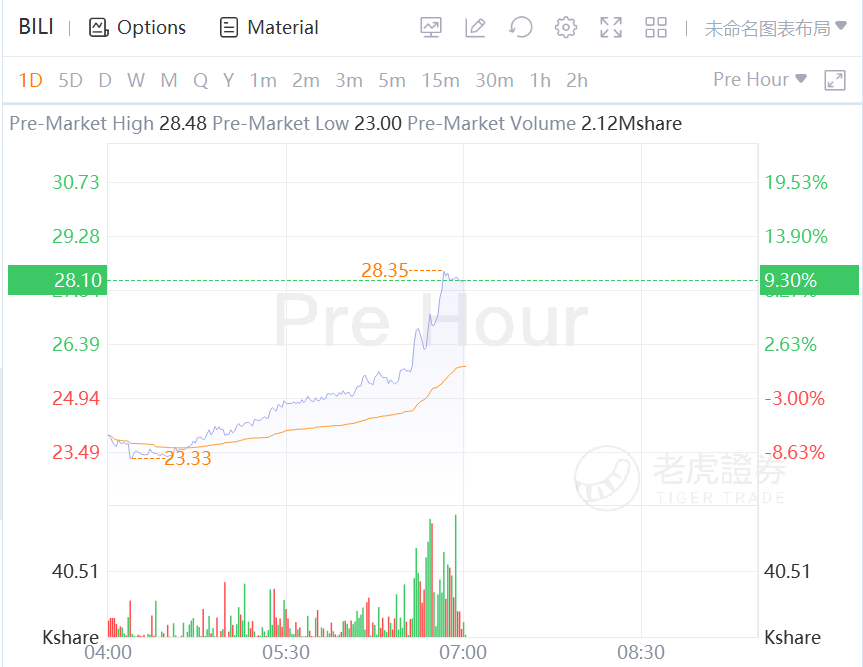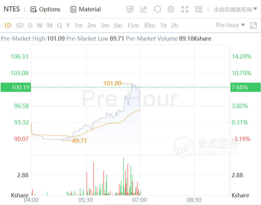 Chinese game ADRs surged in premarket trading, with Bilibili rising over 9% and NetEase rising over 7%.