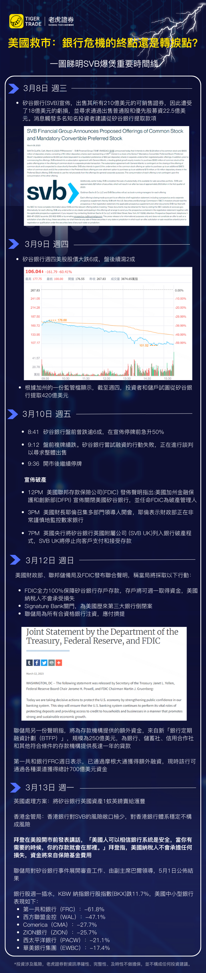 美國財政部、聯邦儲備局及聯邦存款保險公司(FDIC)發表聯合聲明表示,FDIC將100%保障矽谷銀行存戶存款,由13日開始可提取所有資金;同時關閉Signature Bank,所有存戶與矽谷銀行一樣,同樣可以提取賬戶資金;以及向所有合資格存款機構提供額外資金,以助應付擠提。稱納稅人不會承擔任何損失。