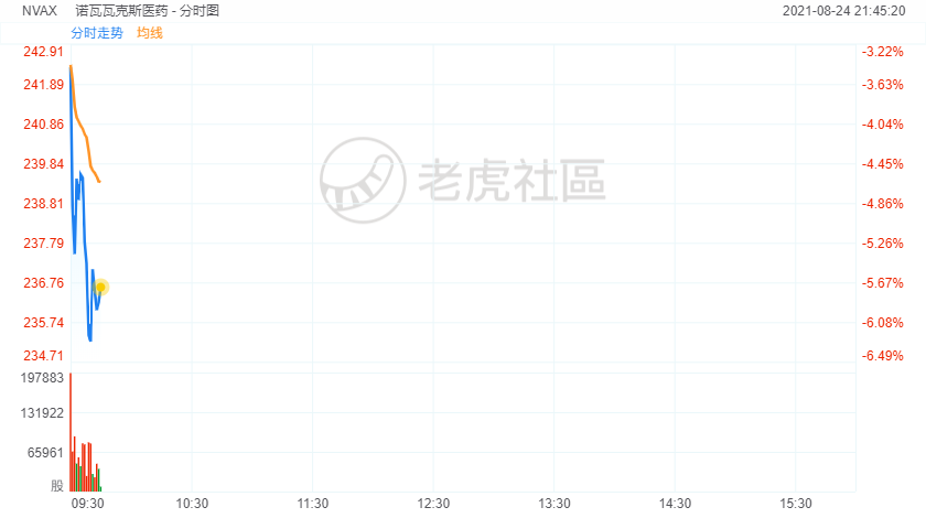8月24日,美股抗疫概念股盘初走低,诺瓦瓦克斯医药跌5.6%,BioNTech SE跌近4%,Moderna跌3.49%,辉瑞跌2.11%。