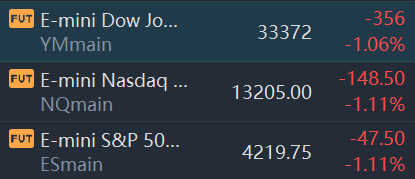 U.S. stock futures fell more than 1%, Dow futures fell 1.06%, Nasdaq 100 futures fell 1.11% and S&P 500 futures futures fell 1.11%.