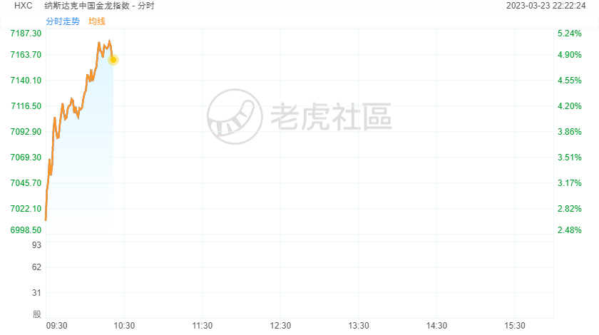 3月23日,纳斯达克中国金龙指数涨超5%,金山云涨超17%,哔哩哔哩涨超11%,腾讯音乐涨超9%,爱奇艺、微博涨超8%,网易涨6%。