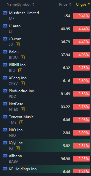 Hot Chinese ADRs Turned Down in Morning Trading; Missfresh Crashed Over 9% While Li Auto Fell Over 4%