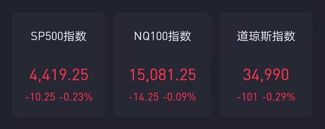周一盘前时段,美股三大指数期货小幅走低,截止发稿,标普500指数期货跌0.23%、纳指期货跌0.09%、道指期货跌0.29%。投资者担忧经济刺激措施收紧和Delta病毒的快速传播。