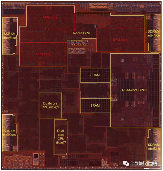 带有原始注释的 A10 die照片。资料来源:Chipworks
