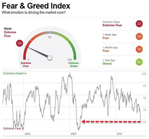 随着标普500指数较历史高点下跌3.5%,市场的恐慌情绪也已经爆发了。CNN的恐惧贪婪指数(Fear & Greed Index)目前处于极度恐慌水平,上一次恐慌水平如此之高时,标普500重挫了40%。