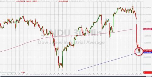 其中,标准普尔500指数迅速跌至50日移动均线,并跌破去年11月以来的上涨趋势线。标普500跌至50日均线(图片来源:ZeroHedge)