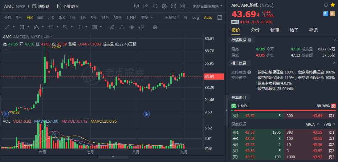 AMC stock $(AMC)$ fell 2% in morning trading, after running up 16.9% amid a three-day win streak to close Tuesday at an eight-week high.