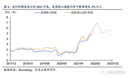 第三,美联储上调2022年核心CPI预期1.4个百分点至4.1%,同时下调经济增长预期至2.8%。本次俄乌冲突对全球范围内的能源、金属和农产品供给造成了较大影响,使得已经处在高位的通胀预期被进一步推升,美国通胀风险已经大于20世纪60年代末和70年代初。我们预计年内美国核心通胀将保持在4%以上。