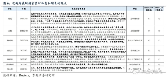 若后续通胀持续高企,市场对美联储一次性加息50bp的预期将大幅上升,但考虑到诸多不确定性,美联储或仍将以每次加息25bp收场。1月议息会议以来,美联储各票委的表态先是强化一次性加息50bp的预期,再最终以加息25bp落地。我们预计美联储后续还将通过这种模式引导市场预期,以降低对金融市场的冲击。