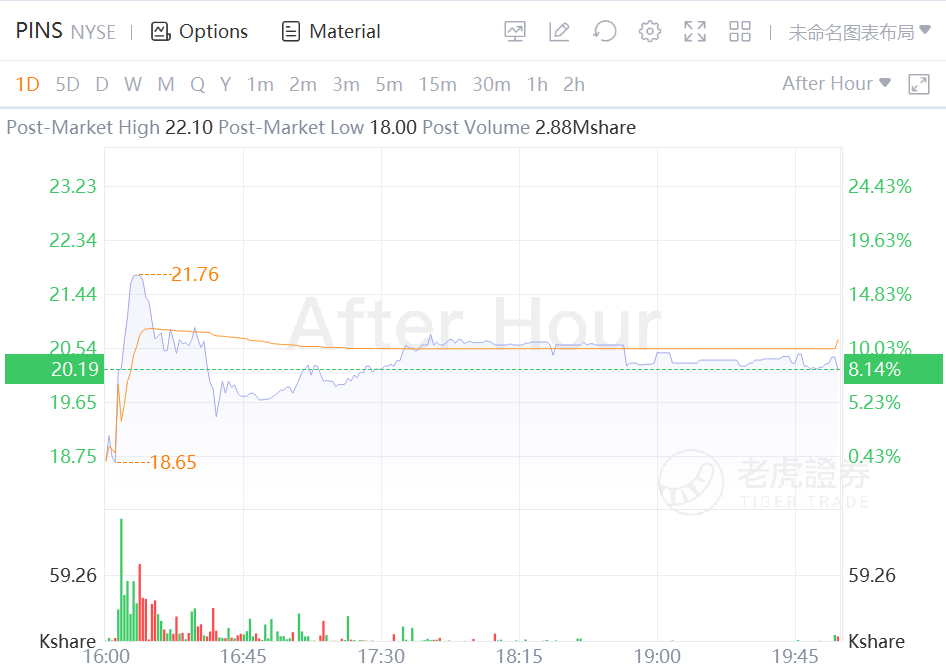 Pinterest stock rose 8% in after-hours trading Wednesday.