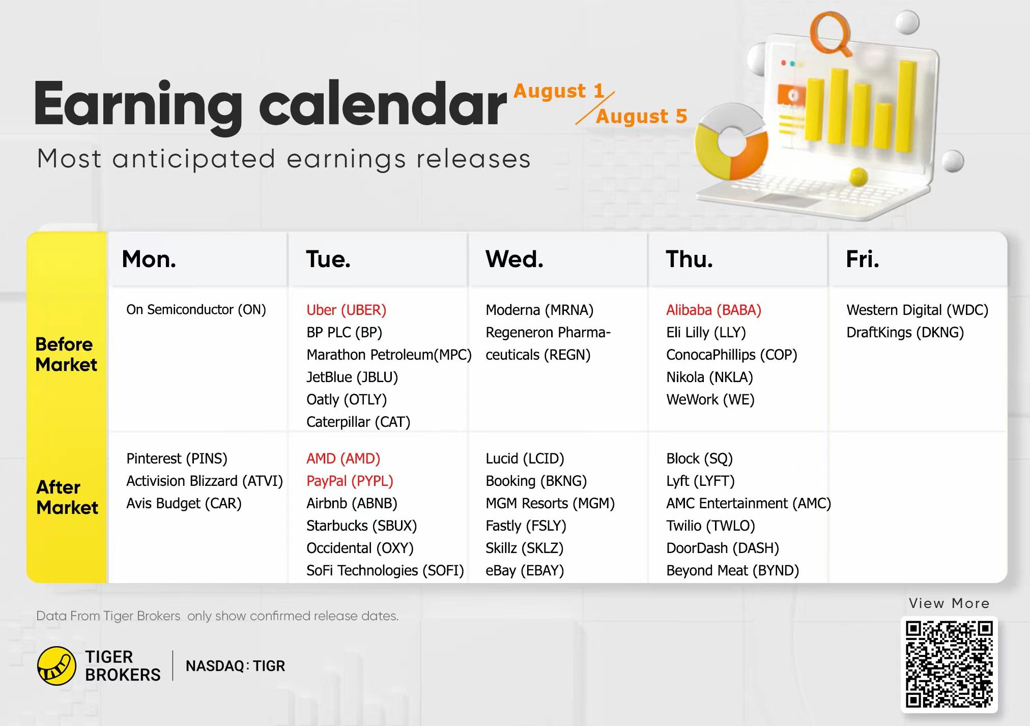 Devon Energy and Simon Property Group will get the ball rolling on Monday before a busy Tuesday: Advanced Micro Devices, Airbnb, Caterpillar, Electronic Arts, Marathon Petroleum, Marriott International, Occidental Petroleum, PayPal Holdings, Starbucks, and Uber Technologies all report.