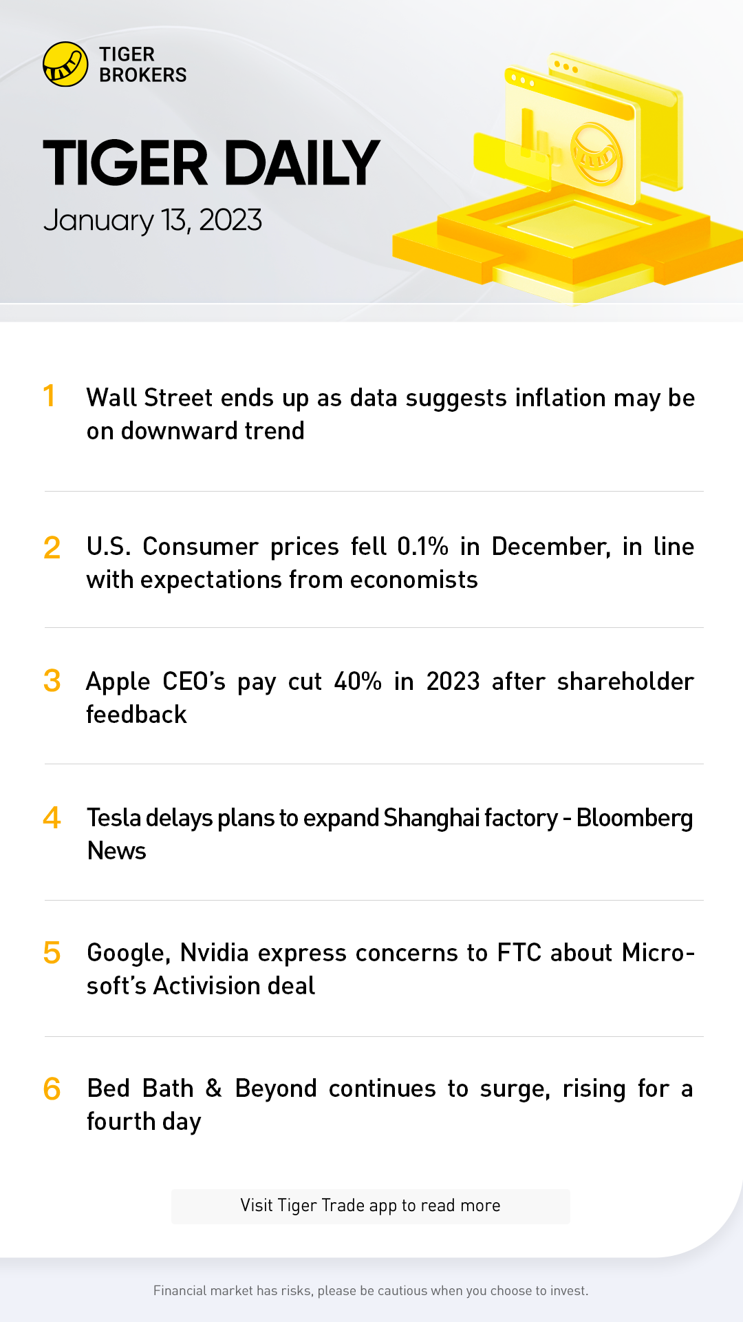 NEW YORK, Jan 12 (Reuters) - U.S. stocks closed slightly higher on Thursday as data showing a fall in consumer prices in December bolstered expectations of less aggressive interest rate hikes from the Federal Reserve.