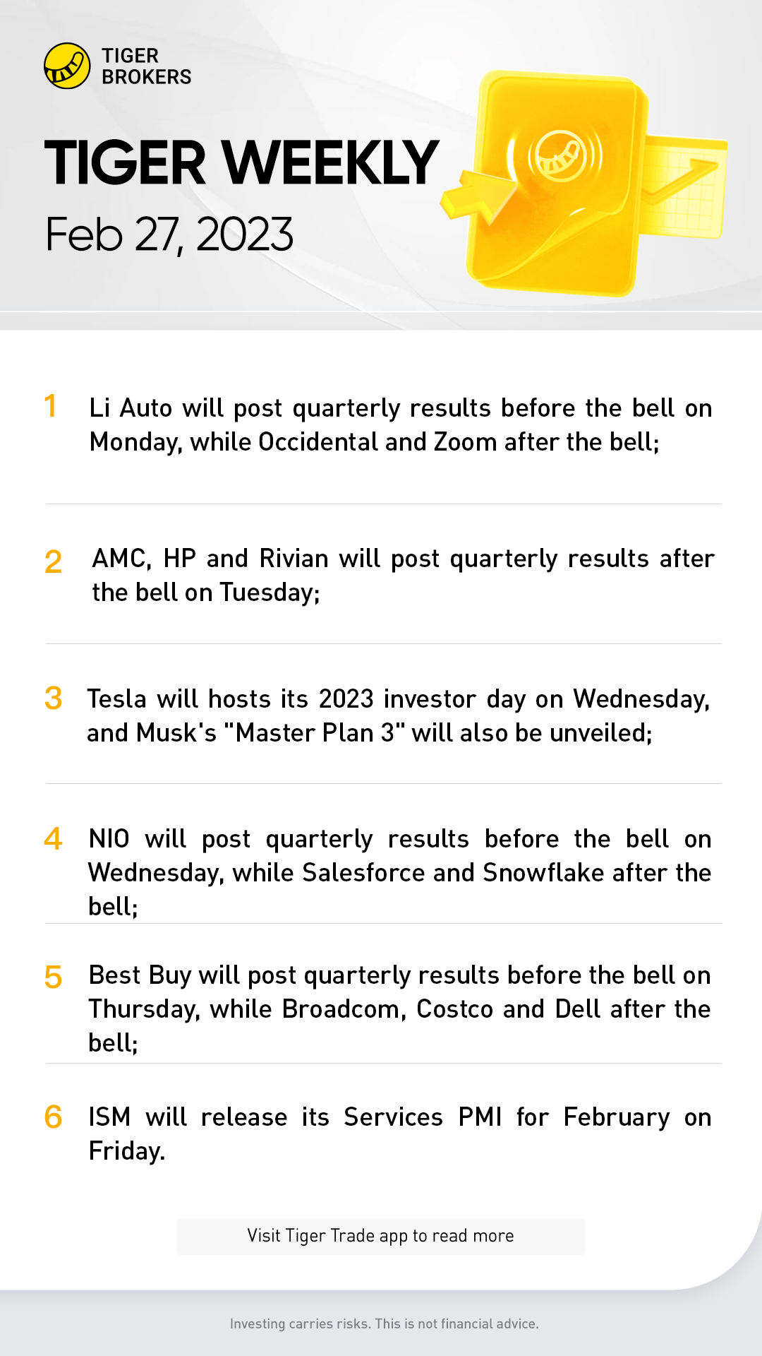 Investor days this week will include events from Chevron and Goldman Sachs Group on Tuesday. Tesla may unveil a new, sub-$30,000 model on Wednesday.