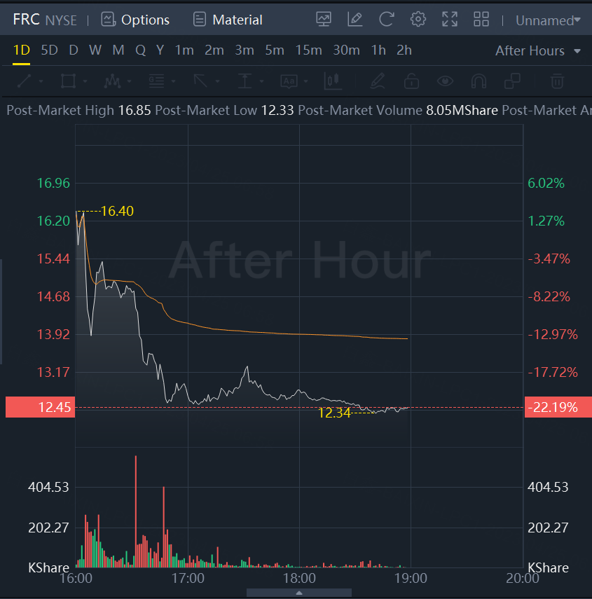 First Republic Bank's stock fell 22% in after-hours trading on Monday despite stronger-than-expected first-quarter profit from the bank, as deposits disappeared amid concerns about regional banks.