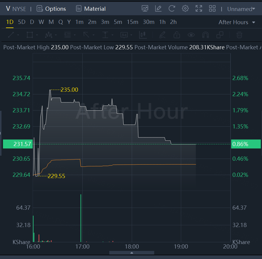 The company logged fiscal second-quarter net income of $4.26 billion, or $2.03 a share, compared with $3.65 billion or $1.70 a share, in the year-earlier quarter. On an adjusted basis, Visa (V) earned $2.09 a share, up from $1.79 a share a year before, while analysts tracked by FactSet were modeling $1.99 a share.