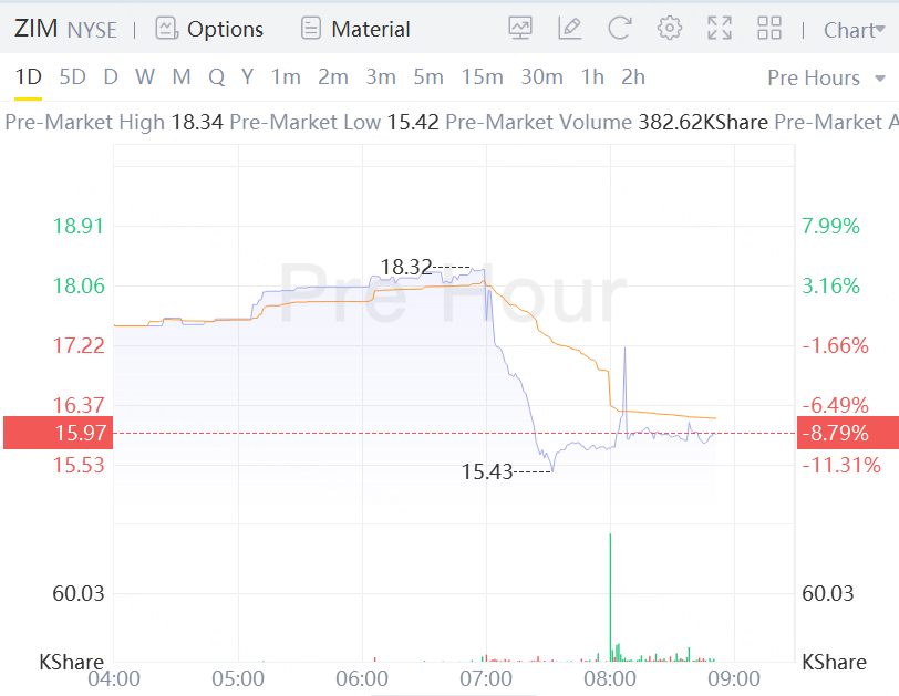 ZIM Integrated Shipping shares were down 8.79% in premarket trading.