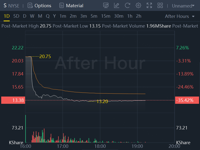 SentinelOne Inc. shares dove more than 35% in after-hours trading Thursday, after the security-software company missed expectations with its financial results and executives slashed their annual guidance while planning layoffs.