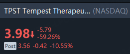 Shares of microcap oncology company Tempest Therapeutics Inc. (TPST) dropped 59.26% during the trading hours and slipped 10.55% in extended trading on Thursday as investors took a breath after the stock's roughly 40-fold gain on Wednesday.