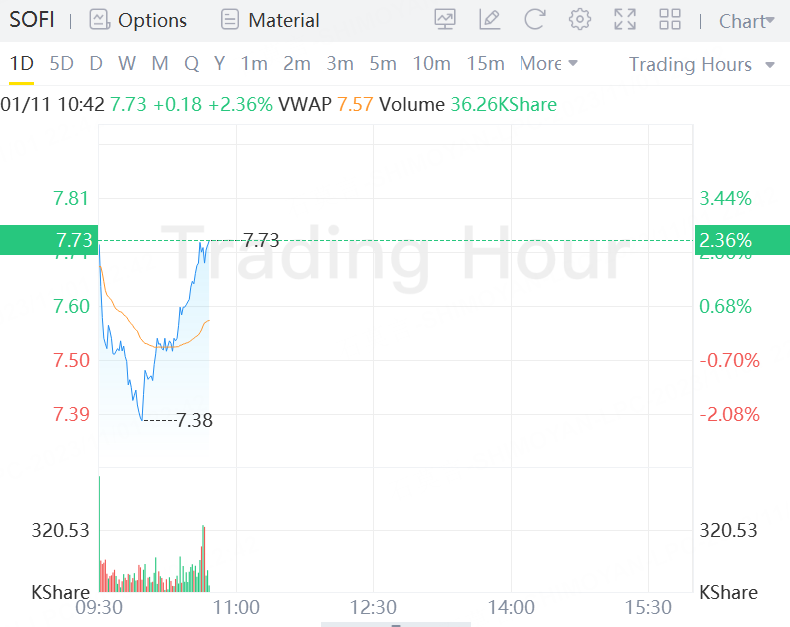SoFi stock continues to jump 2.36% in morning trading on Wednesday.