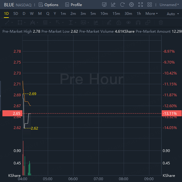 Shares of Bluebird Bio fell over 13% in premarket trading after the company said it would sell its common stock in a public offering.