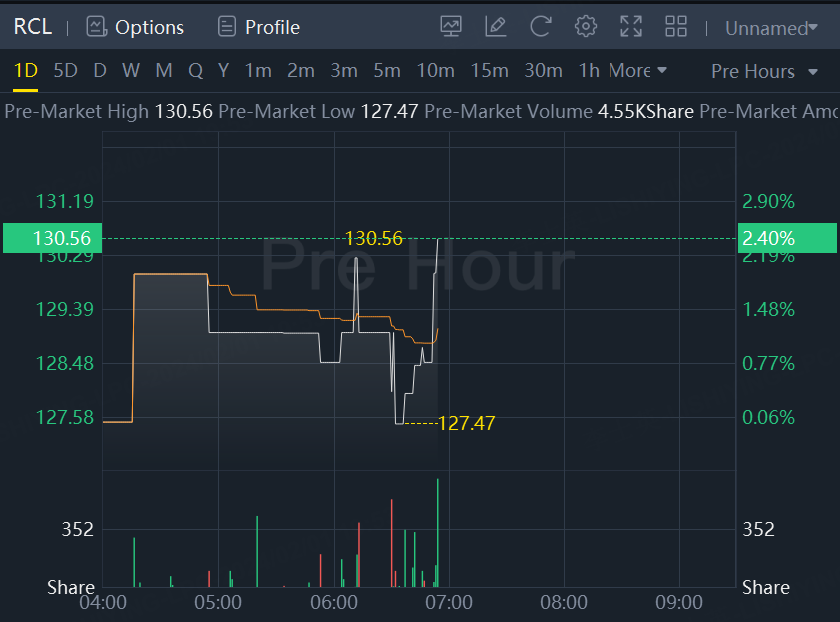Shares of the Miami, Florida-based company, which recently launched the largest cruise ship in the world, were up 2.4% before the bell.