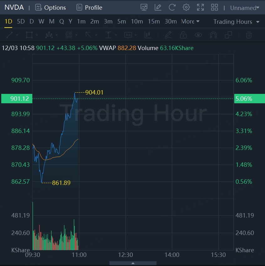 Nvidia was rising early on Tuesday. The chip maker's pivotal role in the artificial-intelligence market was underlined by earnings from software company Oracle.