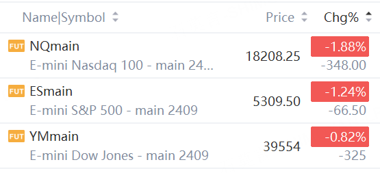 Dow Jones Industrial Average futures slid 325 points, or 0.82%, as S&P 500 futures fell 1.24% and Nasdaq-100 futures tumbled 1.88%.