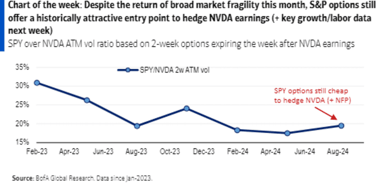 Put options on the S&P 500 offer better protection than Nvidia-based hedges against earnings risk, BofA Global Research says