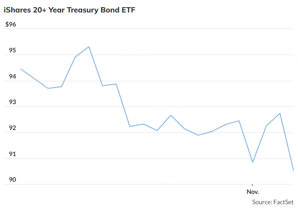 Shares of the roughly $60 billion iShares 20+ Year Treasury Bond ETF (TLT), known as “TLT,” dropped 2.7% on Wednesday.