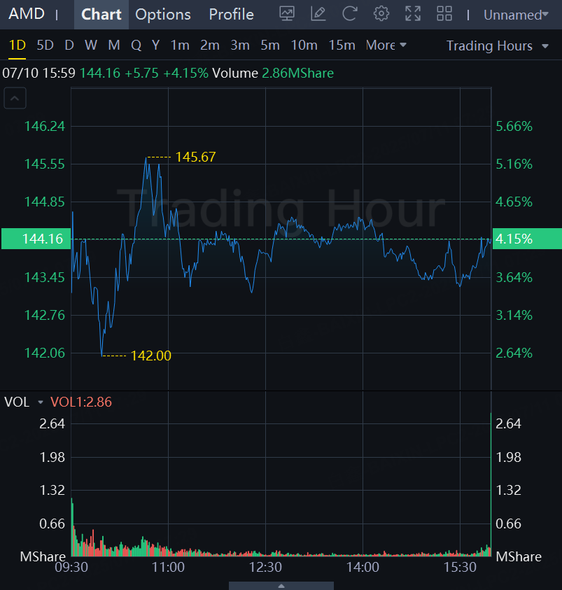 Shares of AMD (AMD) were up more than 4% on Thursday after the team at HSBC moved to a buy rating from a hold rating on the stock, while doubling their price target to $200 - almost 40% above recent levels. The analysts are encouraged about AMD's ability to command higher prices than Wall Street expects for the company's MI350 graphics processing units.