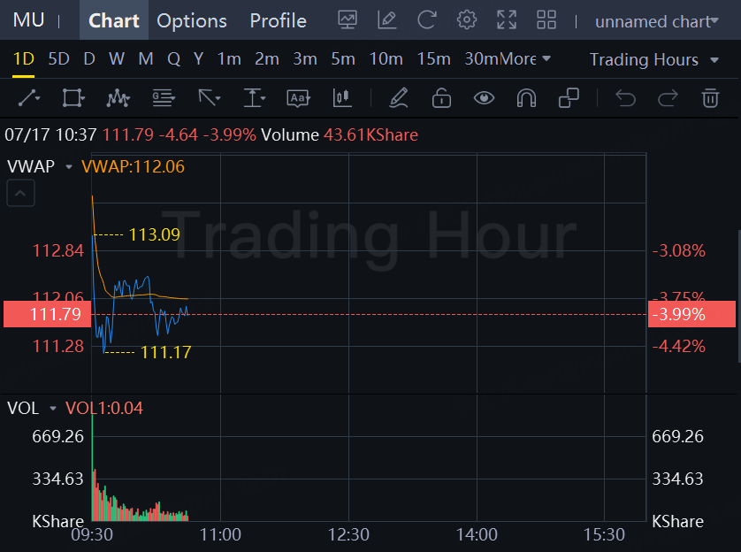 ** Shares of memory chip maker Micron Technology down 4% at $ 111.79 in morning trading, after Goldman Sachs downgrades South Korean rival SK Hynix 000660.KS to "neutral" from "buy"