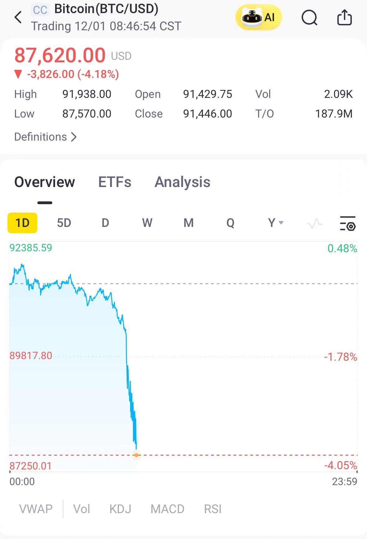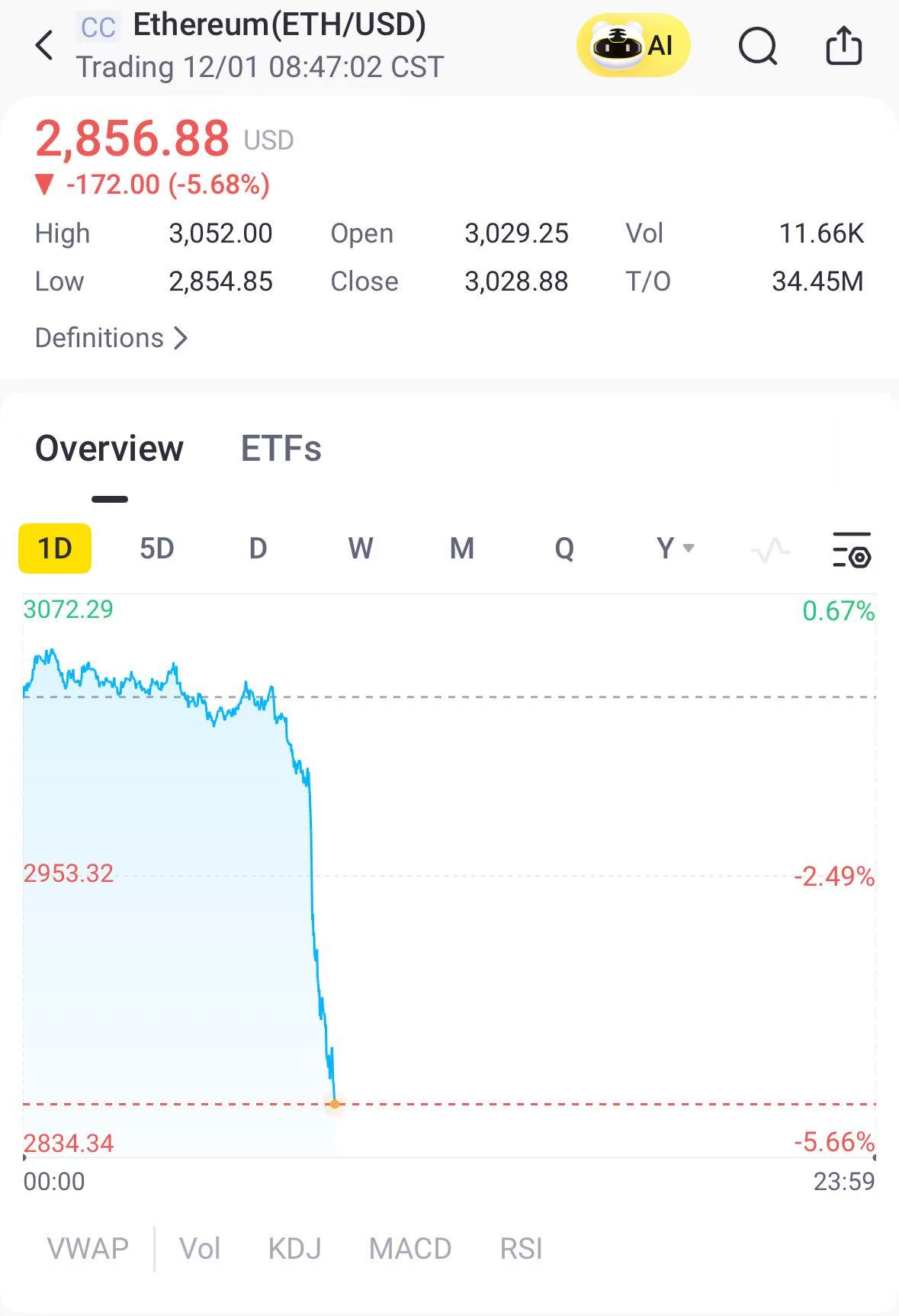 Bitcoin Down 4.2%; Ether Falls 5.7%