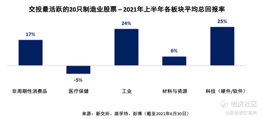 製造業是2021年上半年經濟發展的強勁支柱,也是同期股市中具備防禦性的板塊。新加坡交投最活躍的20只製造業相關股票貢獻了2021年上半年新交所上市股票日均成交總額的20%。