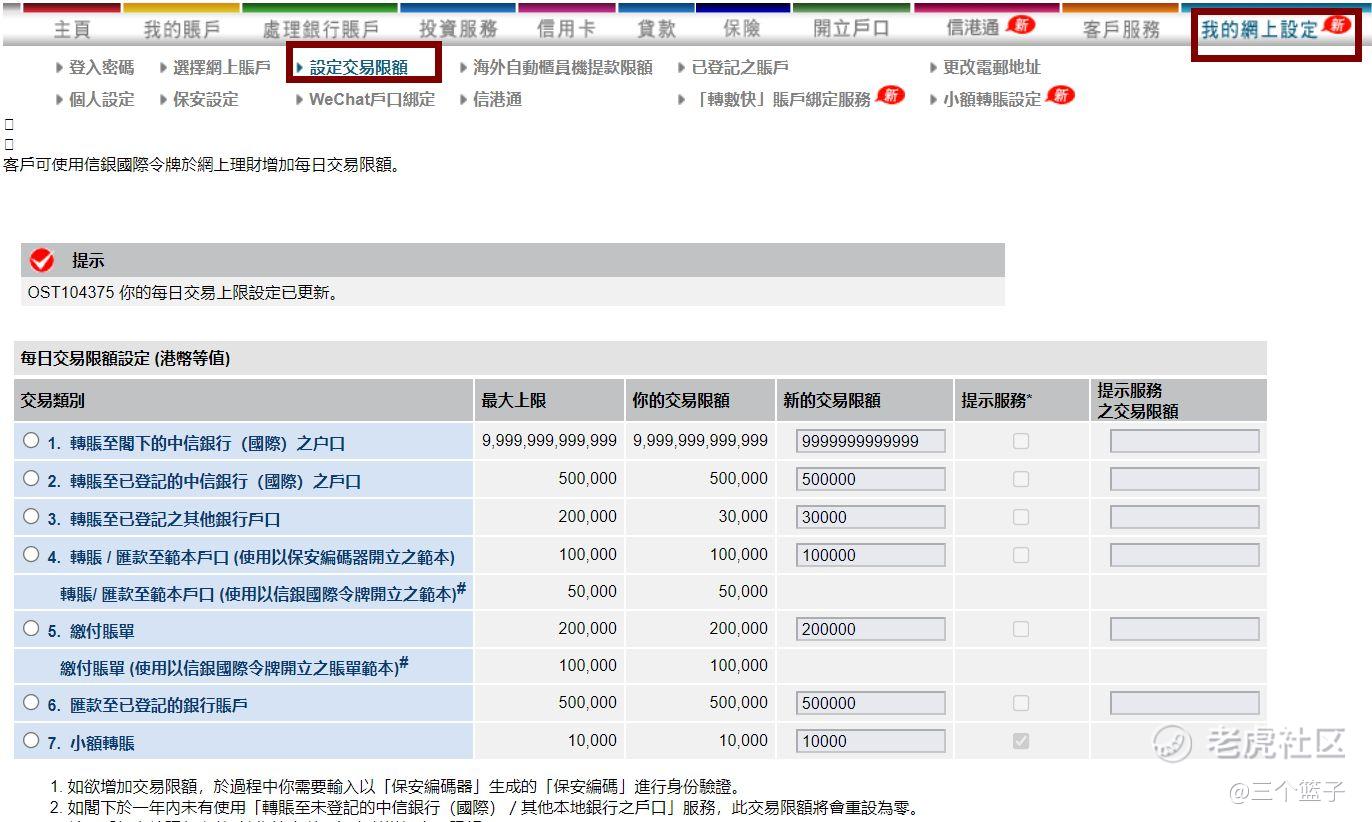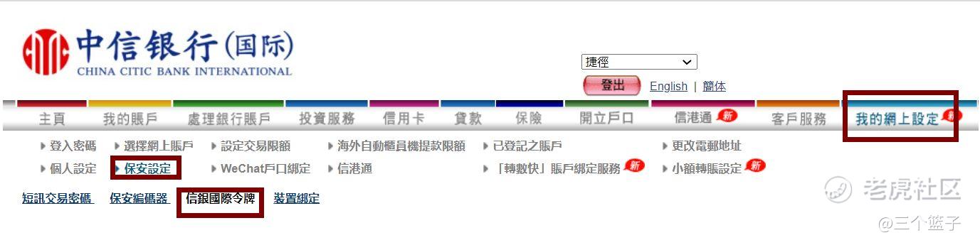 第一步:“我的網上設定” -安保設定-信銀國際令牌