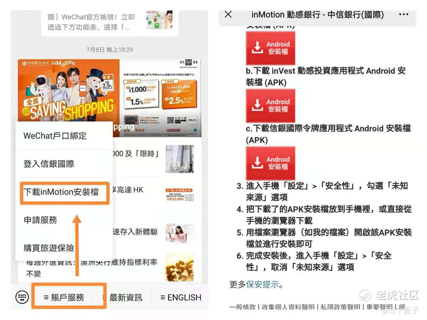 注: 蘋果手機也可從apple store下載;安卓手機也可從Google Play或“信銀國際”公衆號等渠道下載。安卓手機建議從公衆號下載,下載路徑: