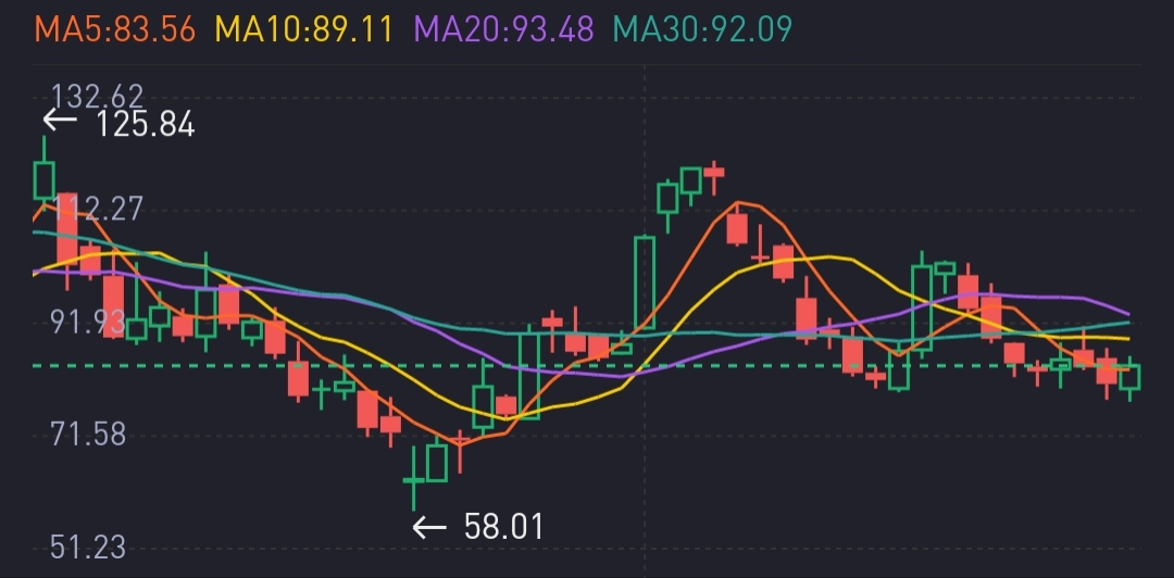 從周K線上看,$阿里巴巴(BABA)$ 如果上行會面臨頸線和均線的阻力,但如果下行,完全有回測2022年低點58附近的需求: