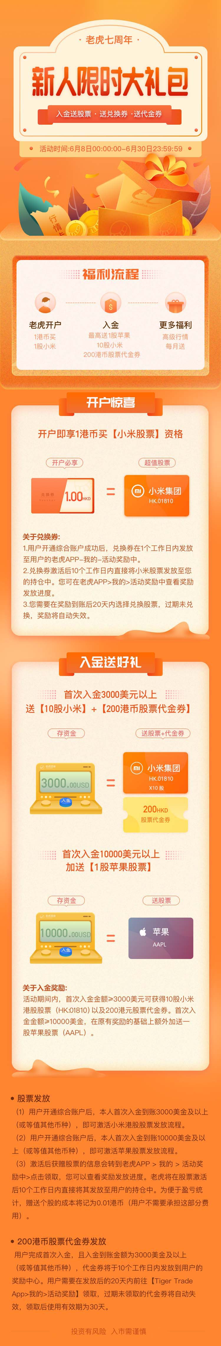 新用戶首次入金禮包大升級,最高可得1股蘋果+10股小米+200港幣股票代金券