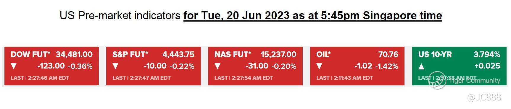 Table - US pre-market indicators for 20 Jun 2023