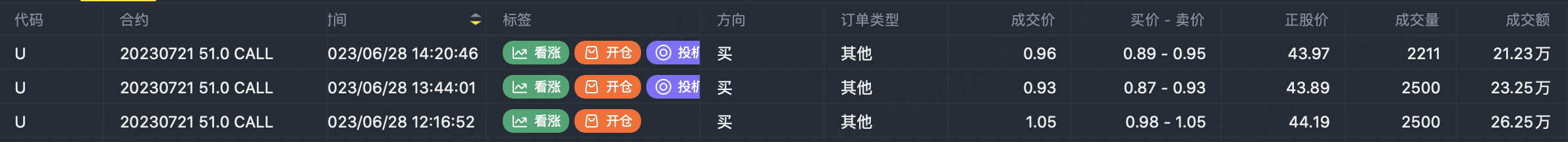 Yesterday's article introduced the story of a trader who bought a call before closing a position and then buying. Then I looked at U's options today, and it is a familiar operation, three times to buy the recent out-of-price call, each volume of 2500, and then a check even the exchange are the same, that must be the trader did not run.