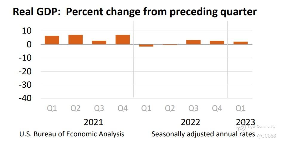 Based on the 3rd estimate released by the Bureau of Economic Analysis (BEA), US Real gross domestic product (GDP) increased at an annual rate of 2.0% in Q1 2023.