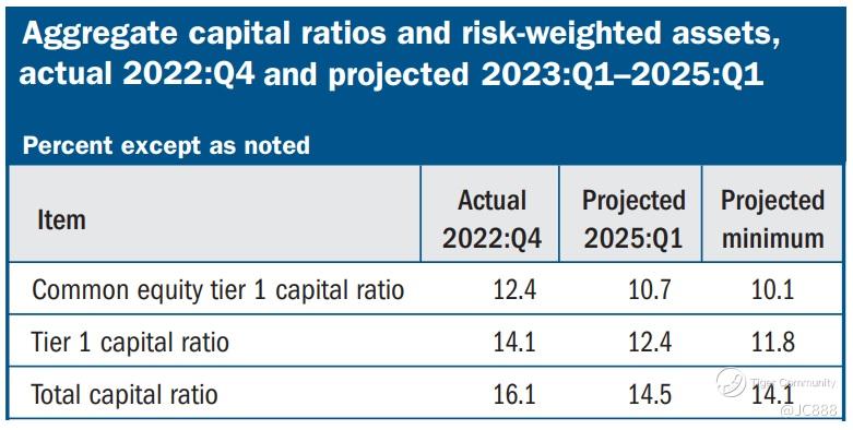 Aggregate CET1 capital ratio is projected to decline from 12.4% at the start of the projection horizon to a minimum of 10.1% before rising to 10.7% at the end of nine quarters.