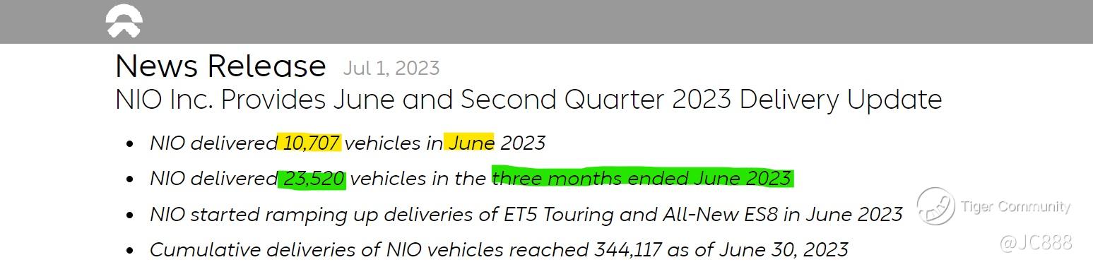 $NIO Inc.(NIO)$ has released its official EV deliveries for June 2023 and Q2 2023.