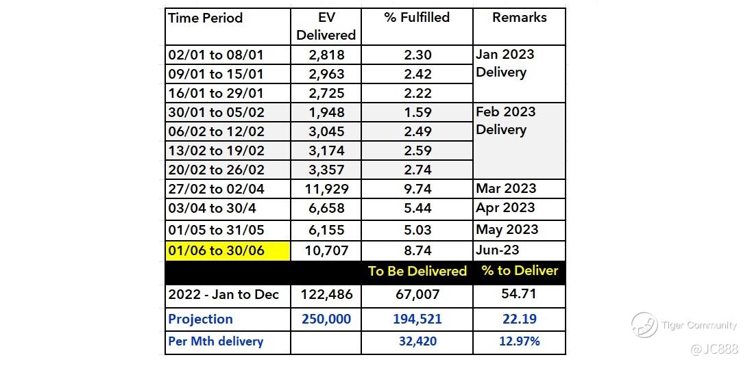 Could refer to Tesla’s latest delivery press release out on 01 Jul 2023 for confirmation.