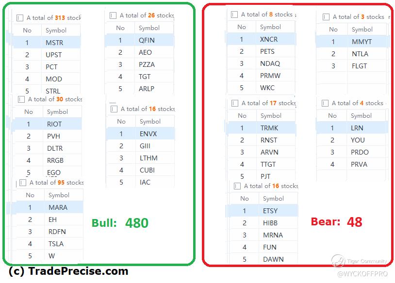 The bullish vs. bearish setup is 480 to 48 from the screenshot of my stock screener below pointing to a positive market environment. @TigerStars