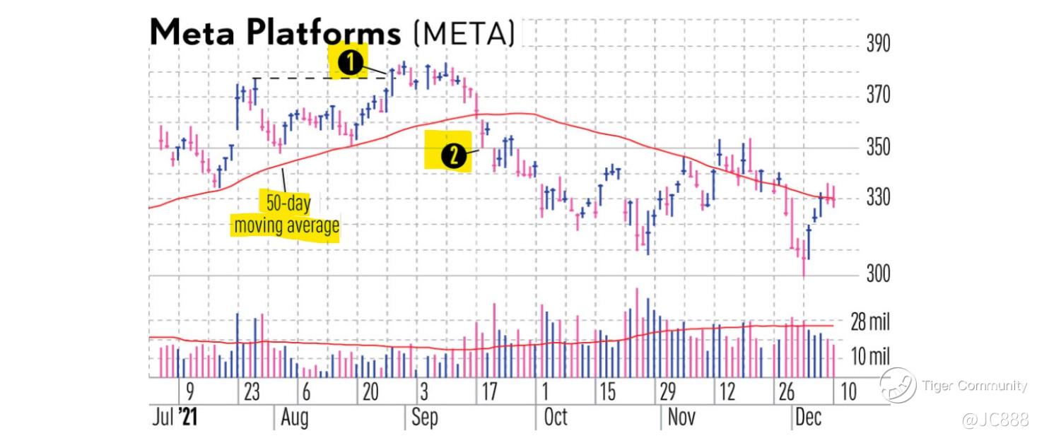 On 20 Sep 2021, Meta fell below its 50-day moving average (ma); first sign of trouble.